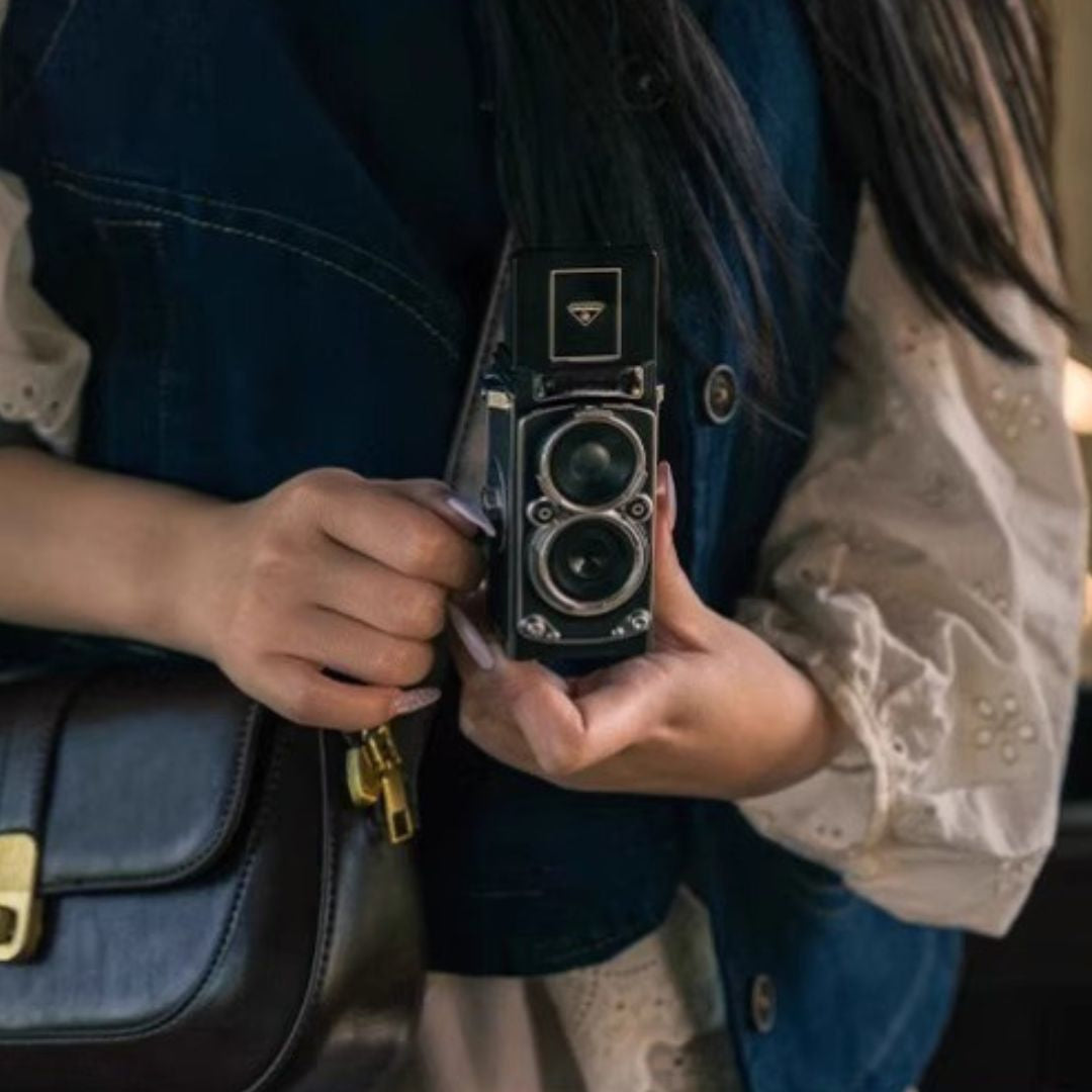RETRO是一款結合復古外型與數碼拍攝的仿真雙反相機, 設計靈感源自經典雙鏡相機,外觀復古細緻,機身小巧輕盈,方便隨身攜帶。
